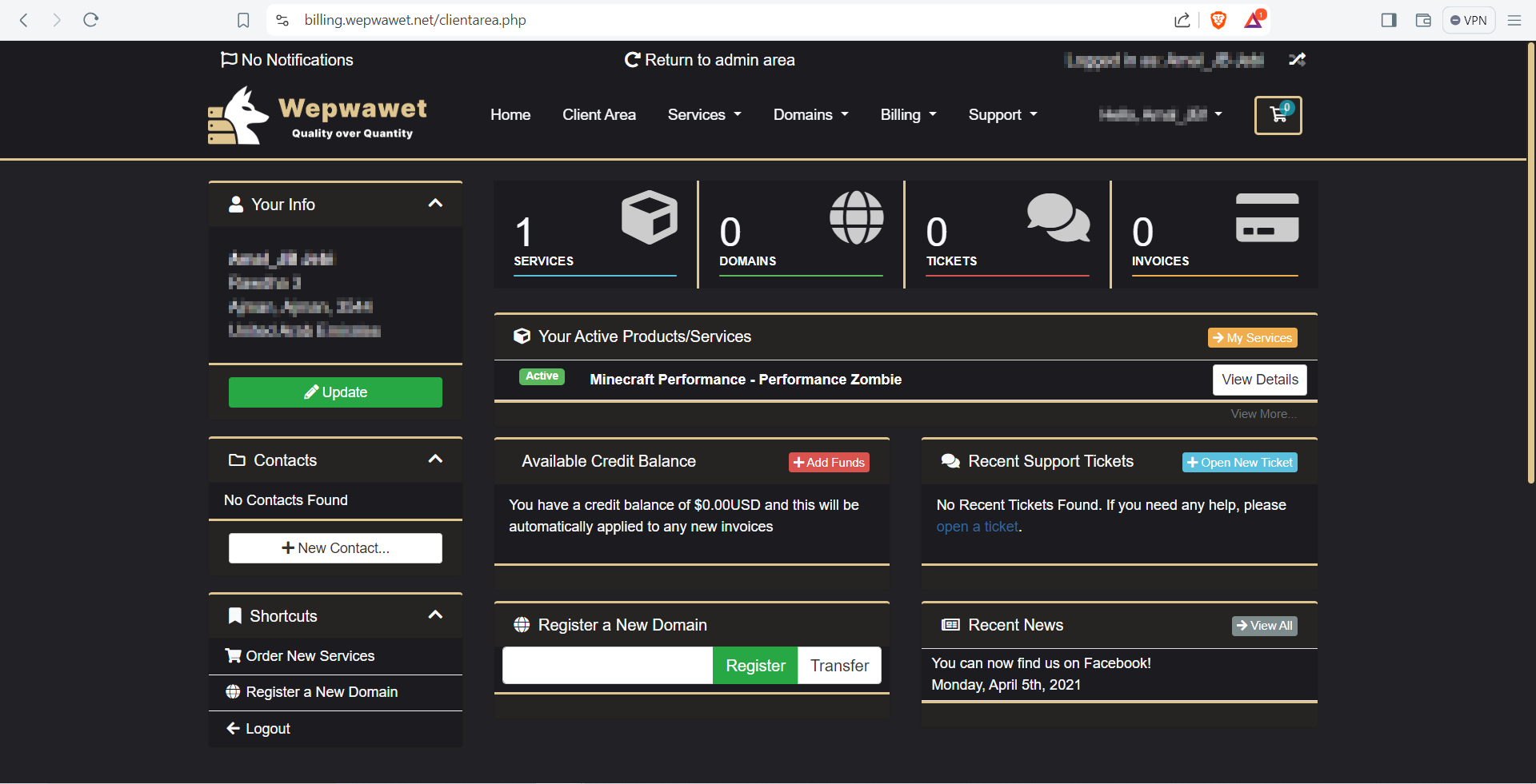 - Log into your billing account