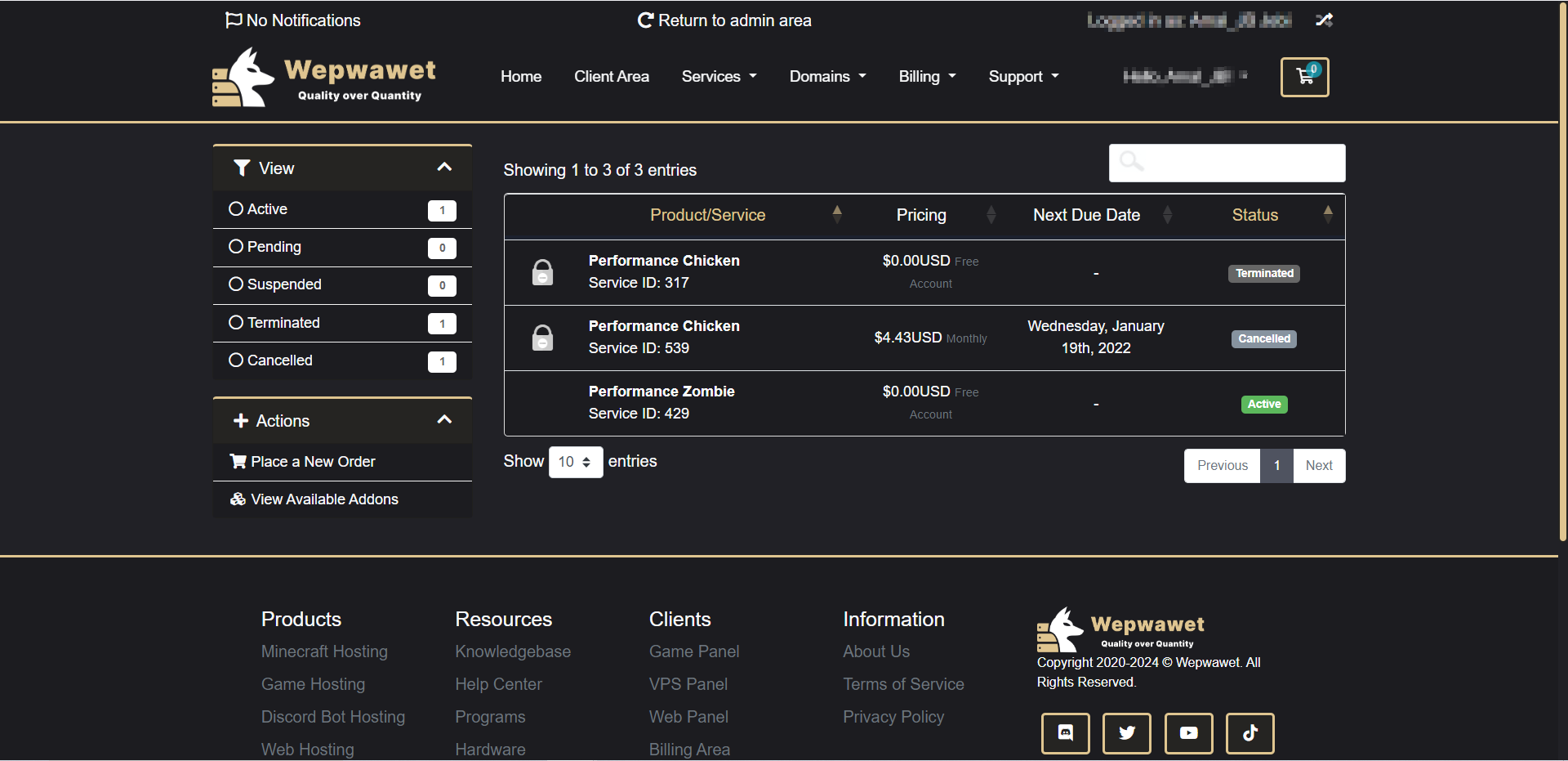 - Click services and then select the service you want to cancel.