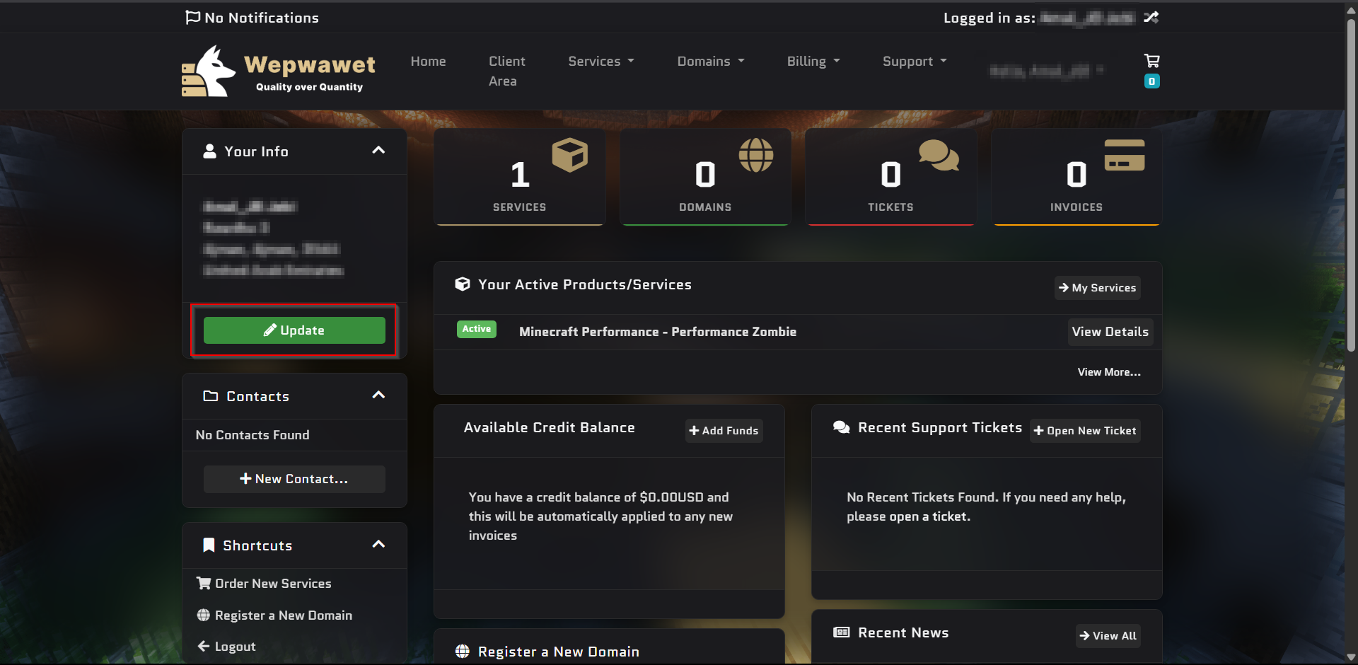 Login to your **Wepwawet Billing Panel