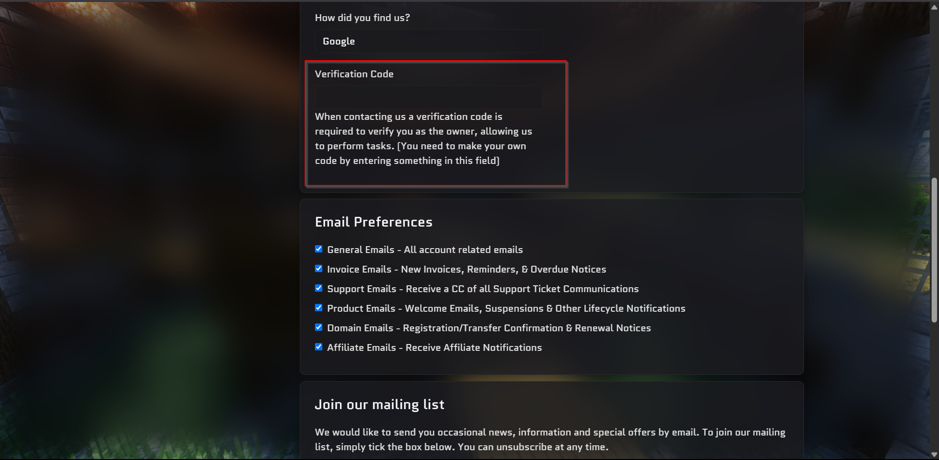 Scroll down till you see Verification Code and enter a code.The code can be set to anything you desire.