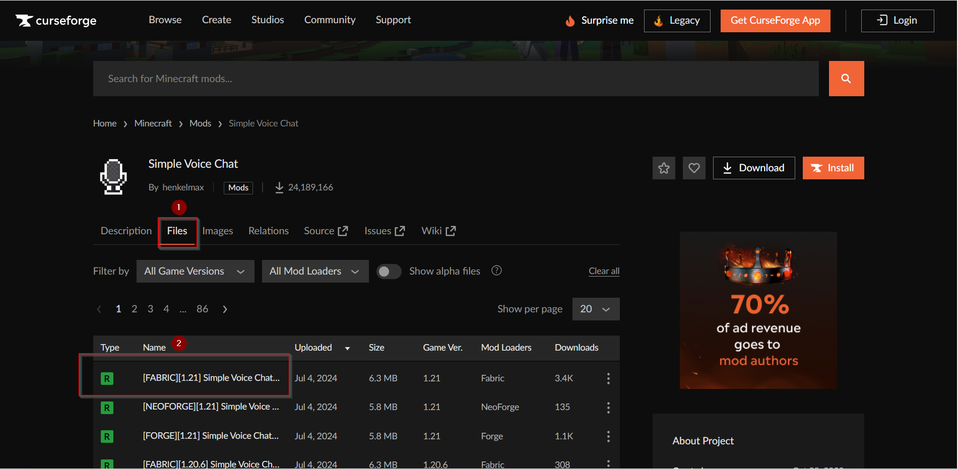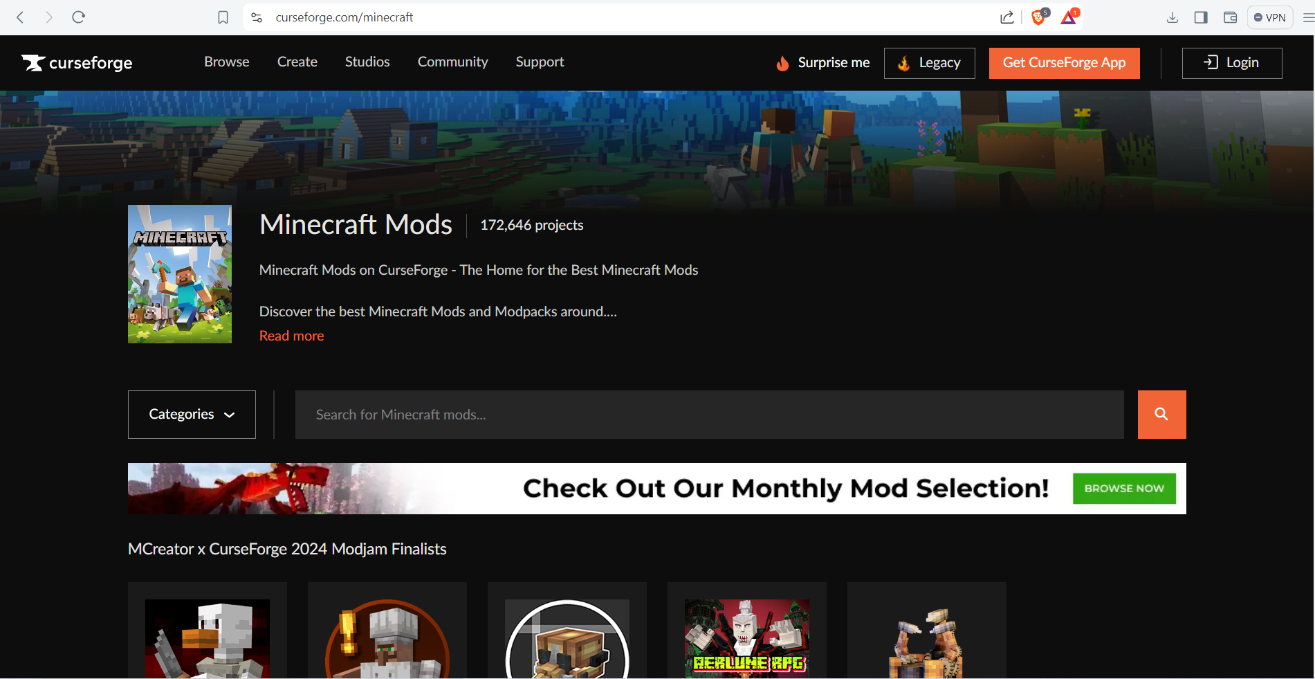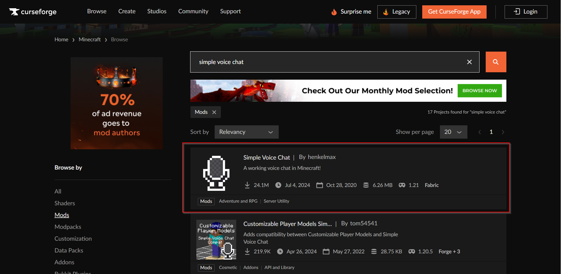 Search for your mod, Select your Provider, Select your Version and then select your Server software