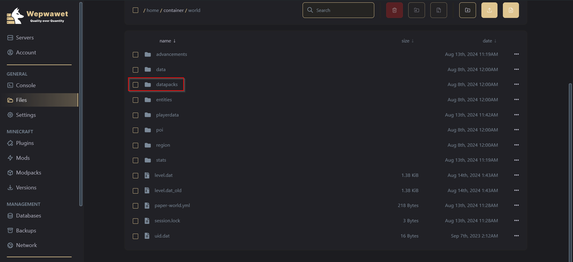 Click on the datapacks folder.