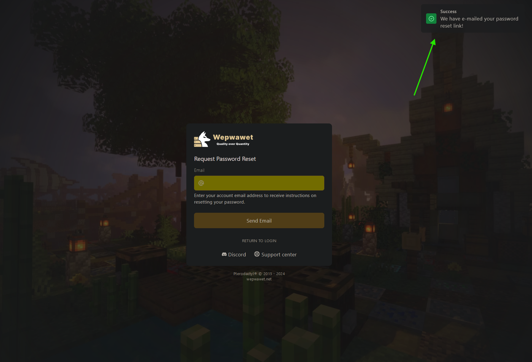 Go to your email and check for any email from Wepwawet Hosting.