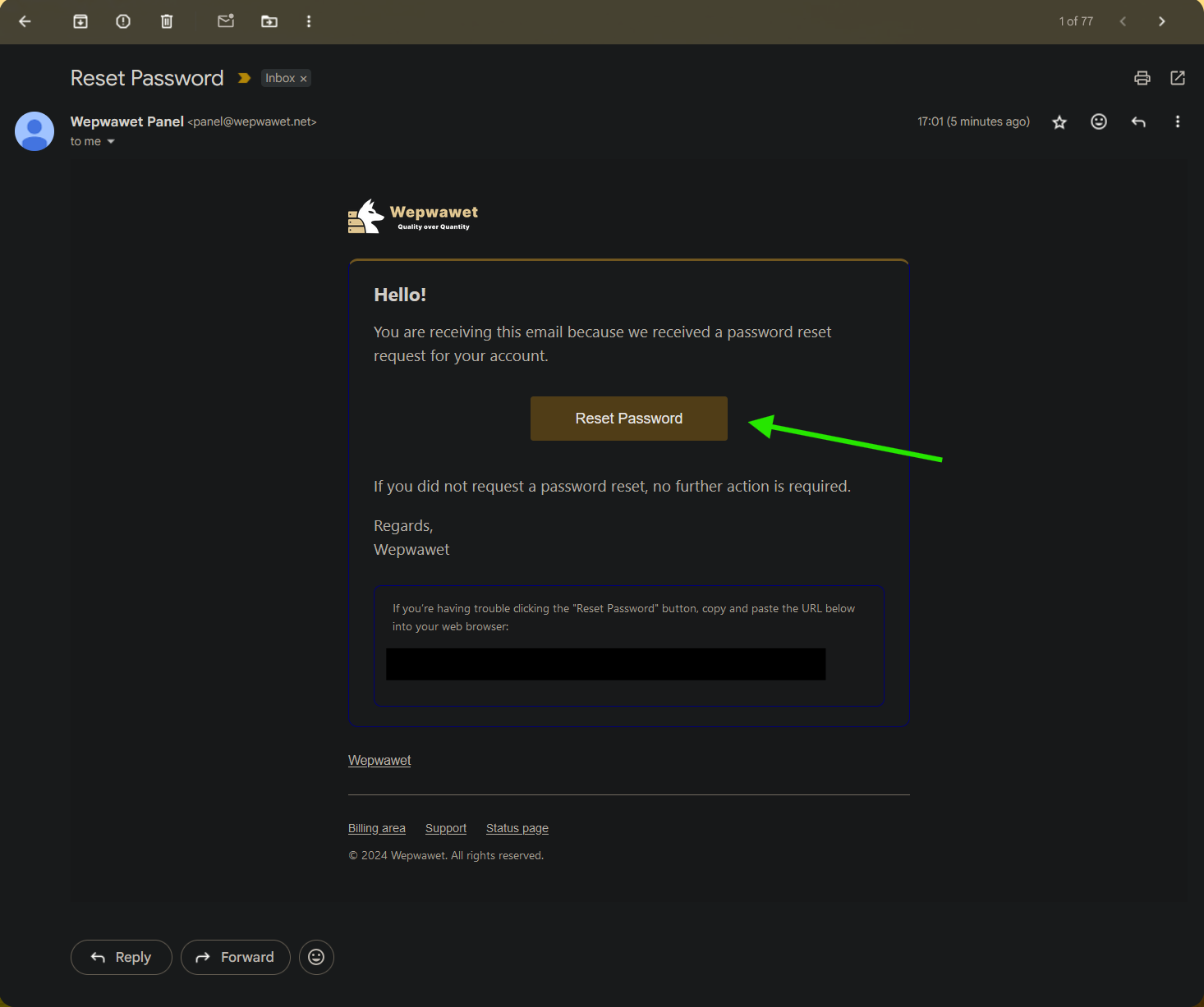 (You may need to check your spam, all mail and blocked.)Then make sure to click Reset Password.