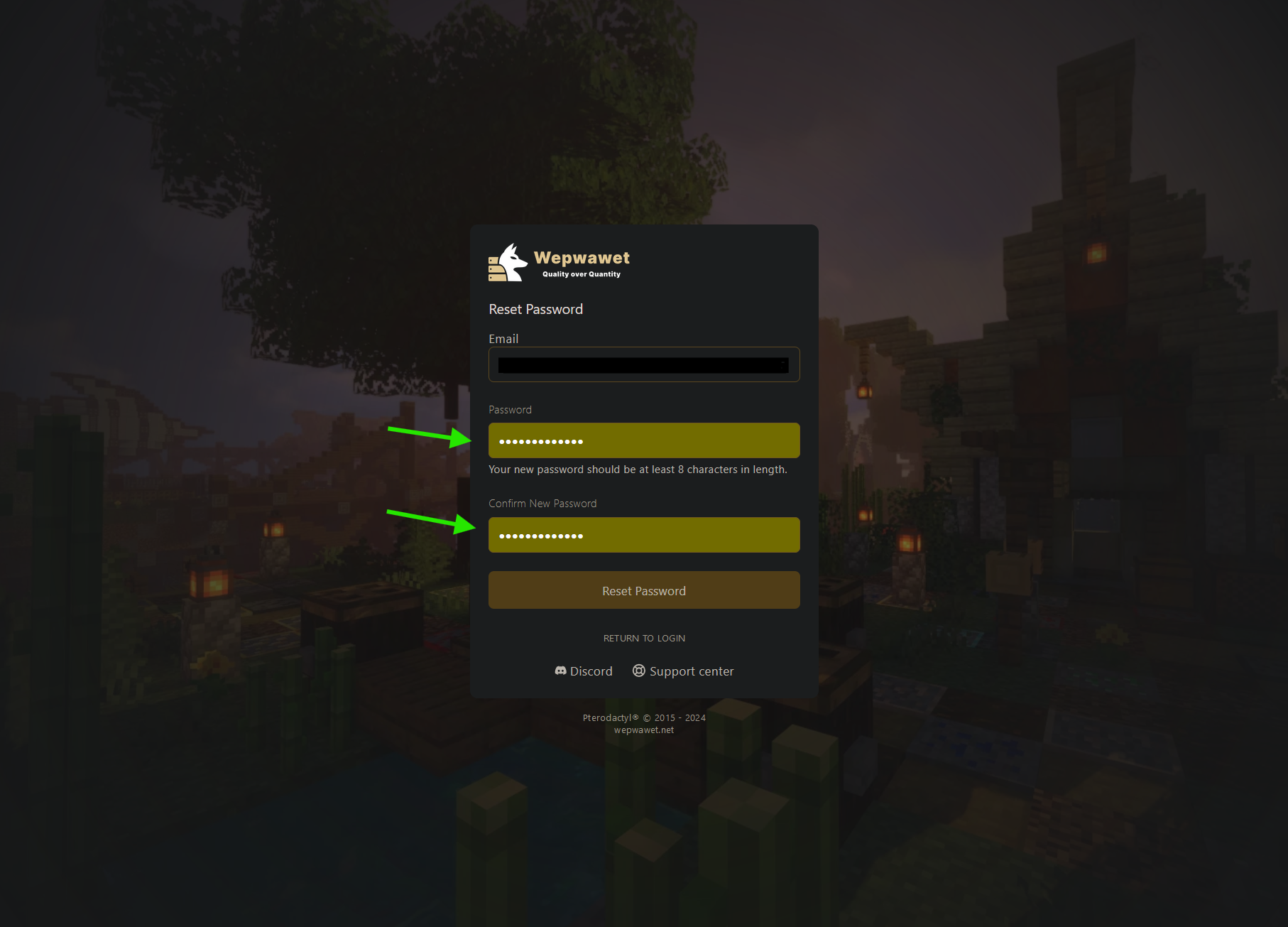 Finally, set your new password, make sure to use the same password in Password.